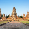 One of the most visited historical site of Ayutthaya, Wat Chaiwattanaram rests on the bank of the Chao Phraya River, to the west of the City Island. The Temple was ordered to built in 1630 by King Prasat Thong to honor his mother, featuring the architectural style influenced by Angkor temple in Cambodia-its unique feature is a large, central prang (Khmer-style pagoda) surrounded by smaller prangs, symbolizing Mount Sumeru, the gods' mountain according to Hindu belief. The lighting at night makes the temple even more exotic and beautiful.